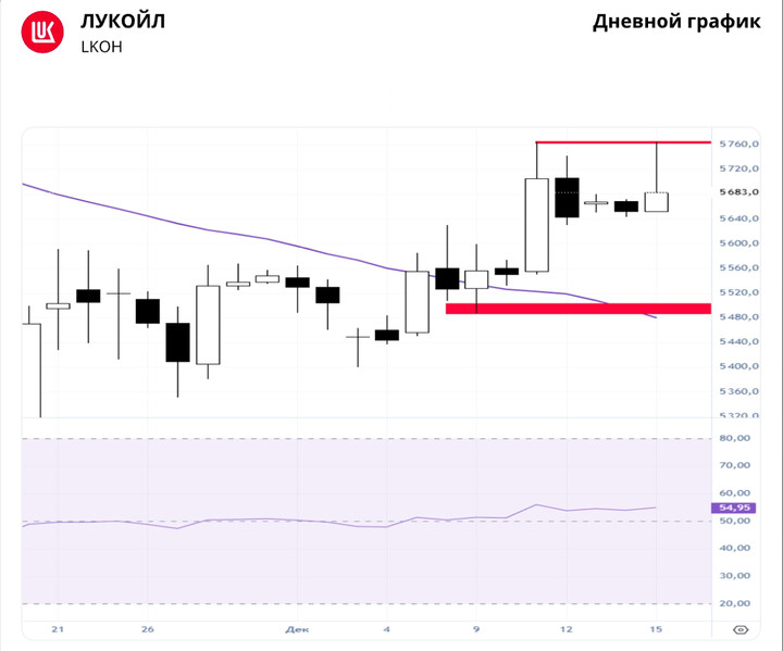 В пятницу акции в моменте сломали поддержку 5678. Минимум дня установлен на отметке 5630. За счет этого следующие цели роста: 1) 5810 2) 5894 отменены. Повторный рост к сопротивлению 5765 не получил пробой наверх. Риски начала коррекции увеличиваются. Следим за реакцией продавцов и попыткой разворота вниз при пробое поддержки 5630.