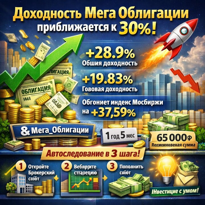 💰 Доходность стратегии автоследования Мега Облигации приближается к 30% 🚀