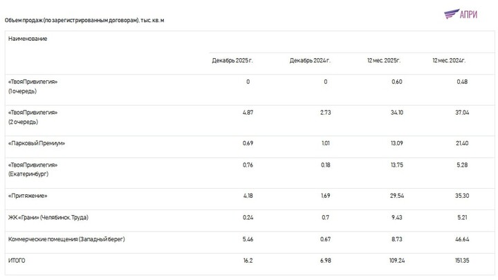 🏗 Ну хоть что-то интересное. Девелоперская Группа компаний АПРИ представила операционные результаты 2025 г.